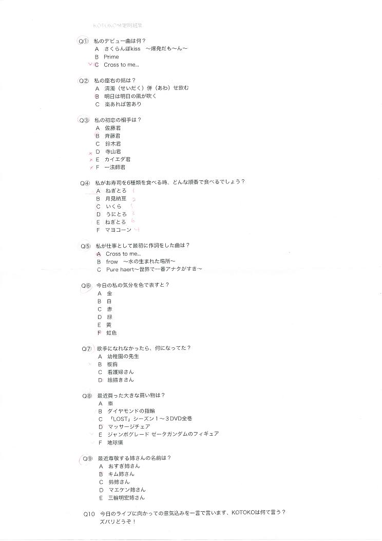 ⑦今度はKOTOKO検定の答え合わせ&高得点者にプレゼント。